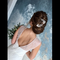 свадебная прическа, гладкий пучок, низкий пучок, прическа для невесты, свадебная прическа на длинные волосы