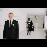 Невеста очень хотела сделать сюрприз для Жениха, но не знала какой...выяснили,что Жених любит"Звездных войнов".И мы пригласили одного из главных героев.Самый подходящий момент был утром, когда Жених этого совсем не ожидал, а ожидал увидеть Невесту