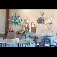 Высокие композиции на столы гостей в ресторане "Весенний лофт на крыше"
