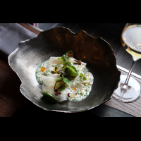Кальмар, кольраби, кокос, щучья икра Squid, kohlrabi, coconut, pike caviar