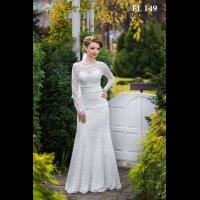 Платье силуэта Русалка,выполнено из гипюра с длинным рукавом.