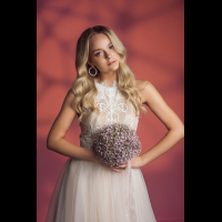 Портрет невесты на розовом фоне с букетом из розовой гипсофилы. Фотограф Наталия Мужецкая