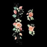 Украшение в прическу. Розы и листочки из холодного фарфора. Бусины под жемчуг.Ювелирная проволока. Крепится в прическу шпильками и невидимками, как колье на ленточке из органзы, на пояс, на плечо, как браслет.
