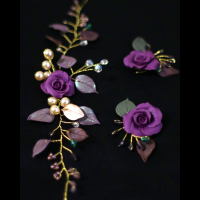 Украшение в прическу. Розы и листочки из холодного фарфора. Бусины под жемчуг.Ювелирная проволока. Крепится в прическу шпильками и невидимками, как колье на ленточке из органзы, на пояс, на плечо, как браслет.