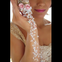 Необычные очень длинные свадебные серьги , сделанные в авторской технике.