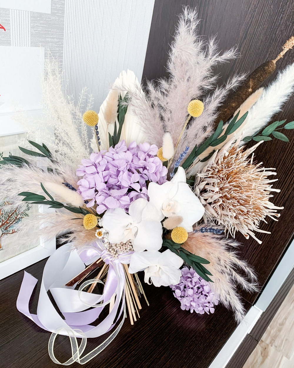 Букет со Стабилизированными орхидеями, гортензией и протеей