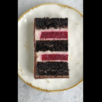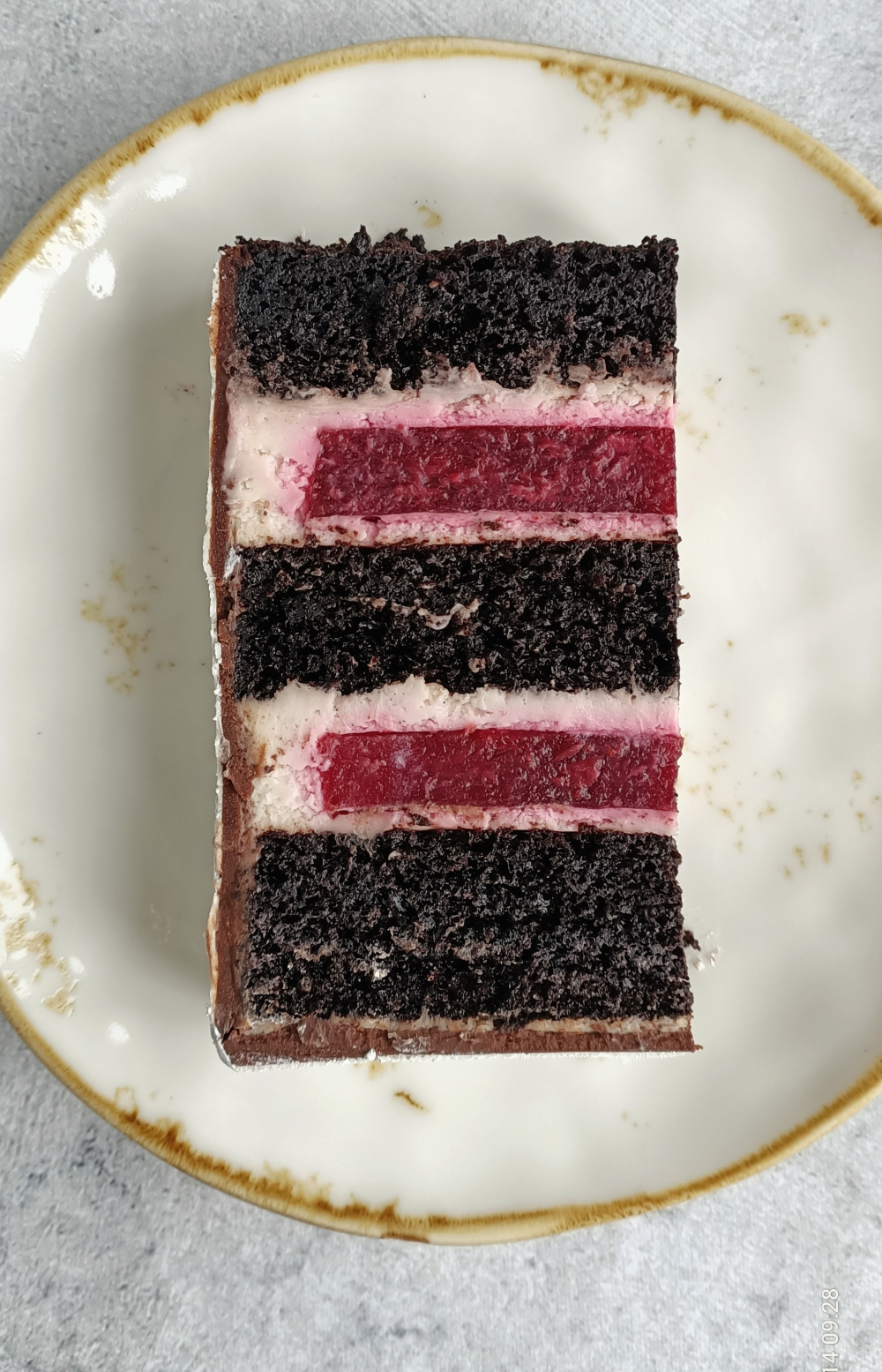 Начинка Вишня-чили, влажные шоколадные бисквиты, ванильный сливочный крем
