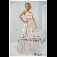 необычное свадебное платье с нежно розовыми розами