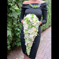 Букет-капля в классическом исполнении. 70 см. и колье из живых цветов.