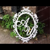 Монограмма, вензель,  пластик 8 мм, цвет белый, 600х900 мм