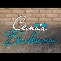 Слова "Семья Белкины" пластик 8 мм, цвет белый, бирюза.