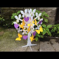 Дерево для пожеланий изготовлено из белого акрила. Сердечки из картона.