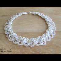 Колье свадебное "Мария" выполнено в старинной технике узелкового кружева - фриволите.