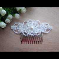 Гребень в прическу изготовлен в старинной технике узелкового кружева - фриволите.