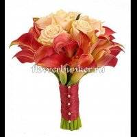 Состав: Букет на своих ногах, роза талея 5шт., калла 19шт., декор.