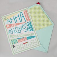 Односторонняя карточка приглашение, конверт с цветной подложкой.