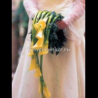 Состав: Букет-муфта, каркас, хедера хеликс бонд темная, каллы 11шт., декор.