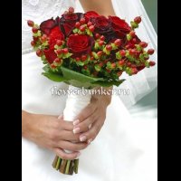Состав: Букет на своих ногах, роза ред наоми 9шт., гиперикум,  зелень, листья галакса, декор.