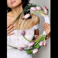 Состав: Каркас, берграсс , аспидистра мини, тюльпаны светло- фиолетовые 13шт., декор.