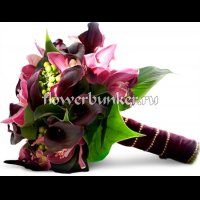 Состав: орхидея цимбидиум (9 шт.), калла (10 шт.), гиперикум, салал, портручка, декор.