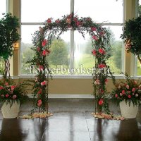 Состав арки: гвоздика белая, розовая, темно-розовая, эвкалипт.