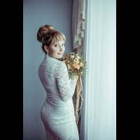 Высокая объемная прическа добавила экстравагантности в образ. И маленькое белое платье уже не смотрится просто. Невеста в таком образе всегда будет смотреться стильно и достойно!