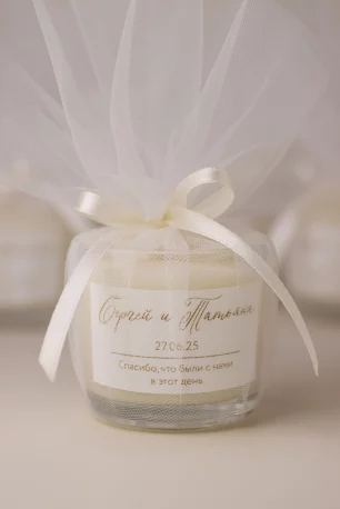 Подарки гостям. Ароматические свечи в стеклянной банке с инициалами молодоженов