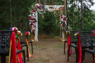 свадебная арка, выездная регистрация, звезды, цветы в арке