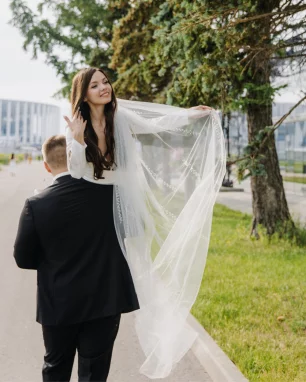 невеста, фотосессия, платье невесты, прогулка, фотосессия, длинное платье, шлейф
