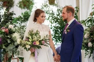Оформление свадебной церемонии многочисленной растительностью и цветами