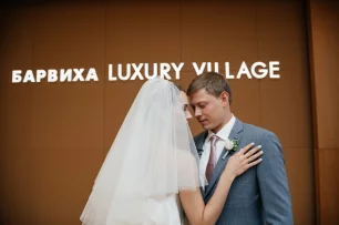 Жених и невеста фото в стеклянных бусах, жемчужный пояс невесты