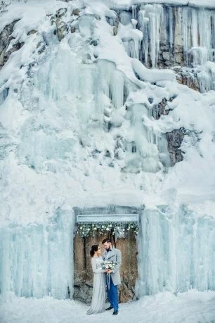 Арка для выездной церемонии в голубых тонах — идеальный выбор для поздней осени, плавно переходящей в зиму