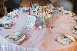 стол гостей, композиция на стол гостей, скатерти на столы гостей, розовая скатерть, салфетки на столы гостей, рассадочные карточки, номер стола, текстиль, цветы на свадьбу, композиция на свадьбу, пастельная флористика, флористика на свадьбу