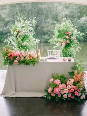 президиум, стол молодоженов, оформление банкета, флористика и декор