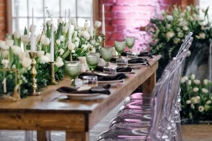 Столы гостей на свадьбе Алексея и Маргариты. От розового до марсалы