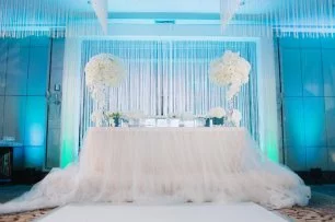 оформление президиума, декор президиума, президиум, стол молодых, стол молодоженов, белое оформление президиума, воздушное оформление, декор стола молодых