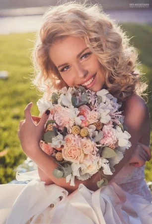 Невеста с нежным свадебным букетом