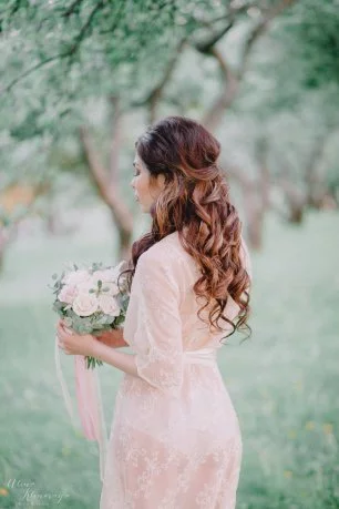 розы, флористика, прическа, образ, букет невесты, ленты, будуарная фотосессия, фотосессия невесты, утро невесты