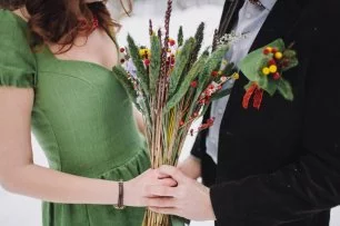 Зеленый свадебный букет с колосьями пшеницы