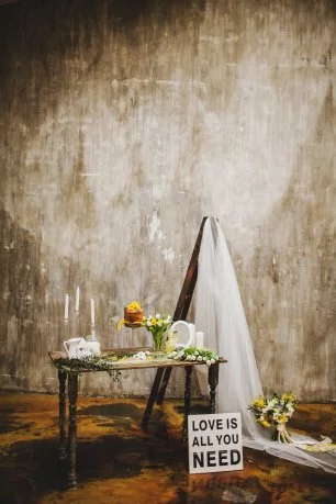 лофт, индустриальный стиль, бохо, свадьба в лофте, перья, выездная регистрация, гирлянда из лампочек