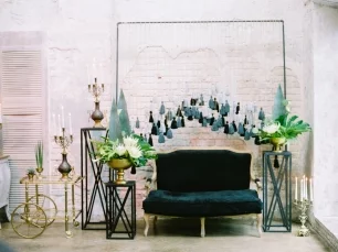 стол для фотозоны, марсала, бордо, богемная свадьба, бохо, венок из живых цветов, растрепанный букет
