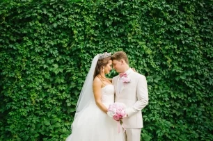 Жених и невеста в зеленом саду