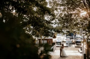 свадебное платье, свадебная фотосессия, прогулка, стильное платье, стильный костюм жениха, свадьба на природе