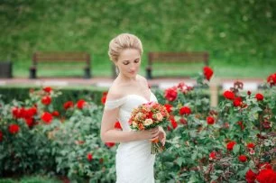букет, букет невесты, жених и невеста, невеста, платье, свадебное платье, прогулка
