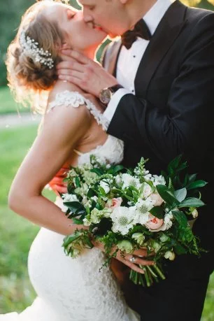 фотосессия, поцелуй, свадебное фото, нежная свадьба, декор свадьбы в москве, букет невесты, платье невесты, бабочка, костюм жениха, брошь