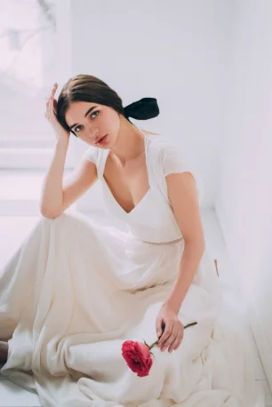 легкое свадебное платье, свадебное платье, минималистичное свадебное платье, свадебное платье с декольте, шелковое свадебное платье