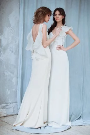платье невесты, платье с воланами, платье с открытой спиной, нежный образ невесты, изысканное свадебное платье
