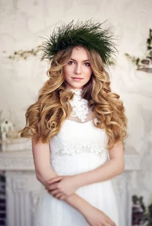венок на голову, образ невесты, красивые локоны на свадьбу