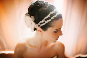 невеста, макияж, прическа, венок, перья, распущенные волосы