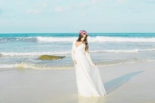 невеста, свадебное платье, берег, пляж, цветочный венок, фотосессия, свадьба